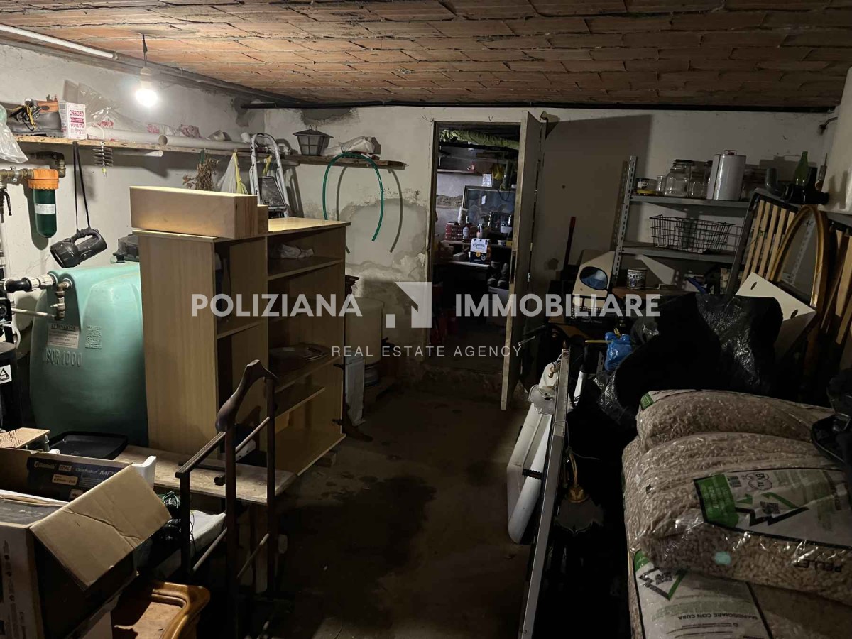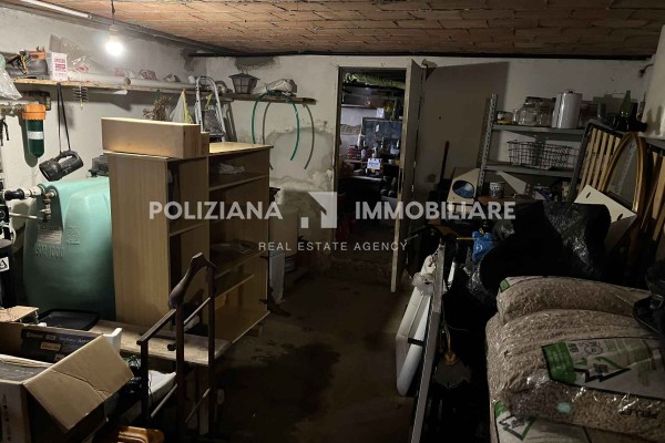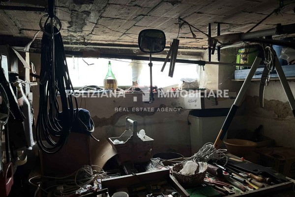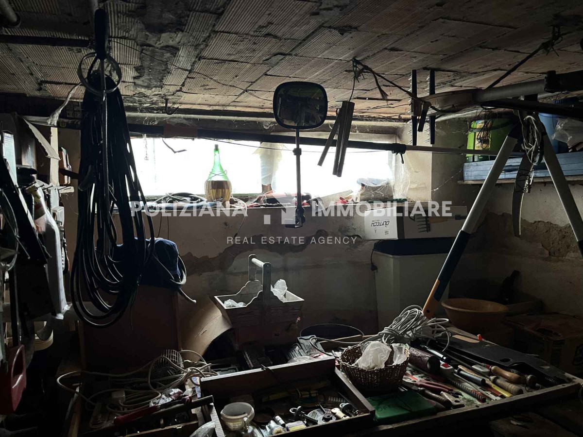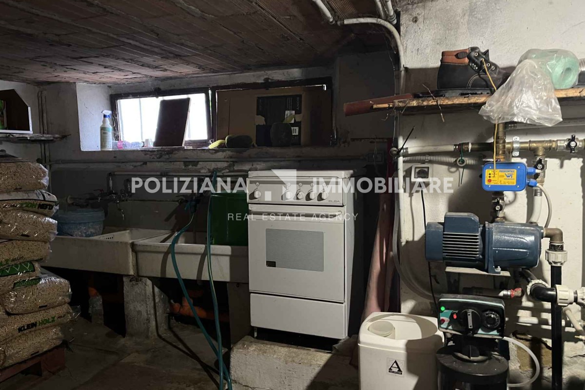Zona cantina/magazzino con lavatoi, pompa, impianti e ampi spazi utili.