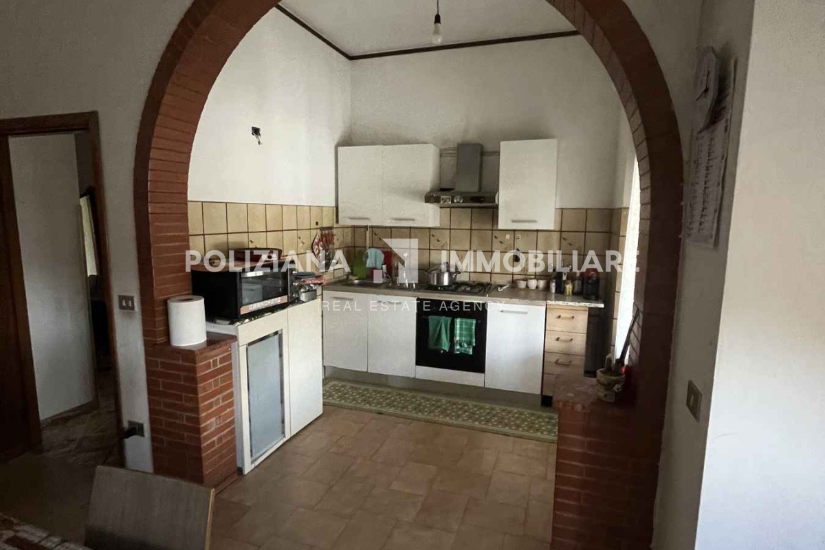 grande cucina abitabile, divisa da un arco in mattoni, completa di camino funzionante;