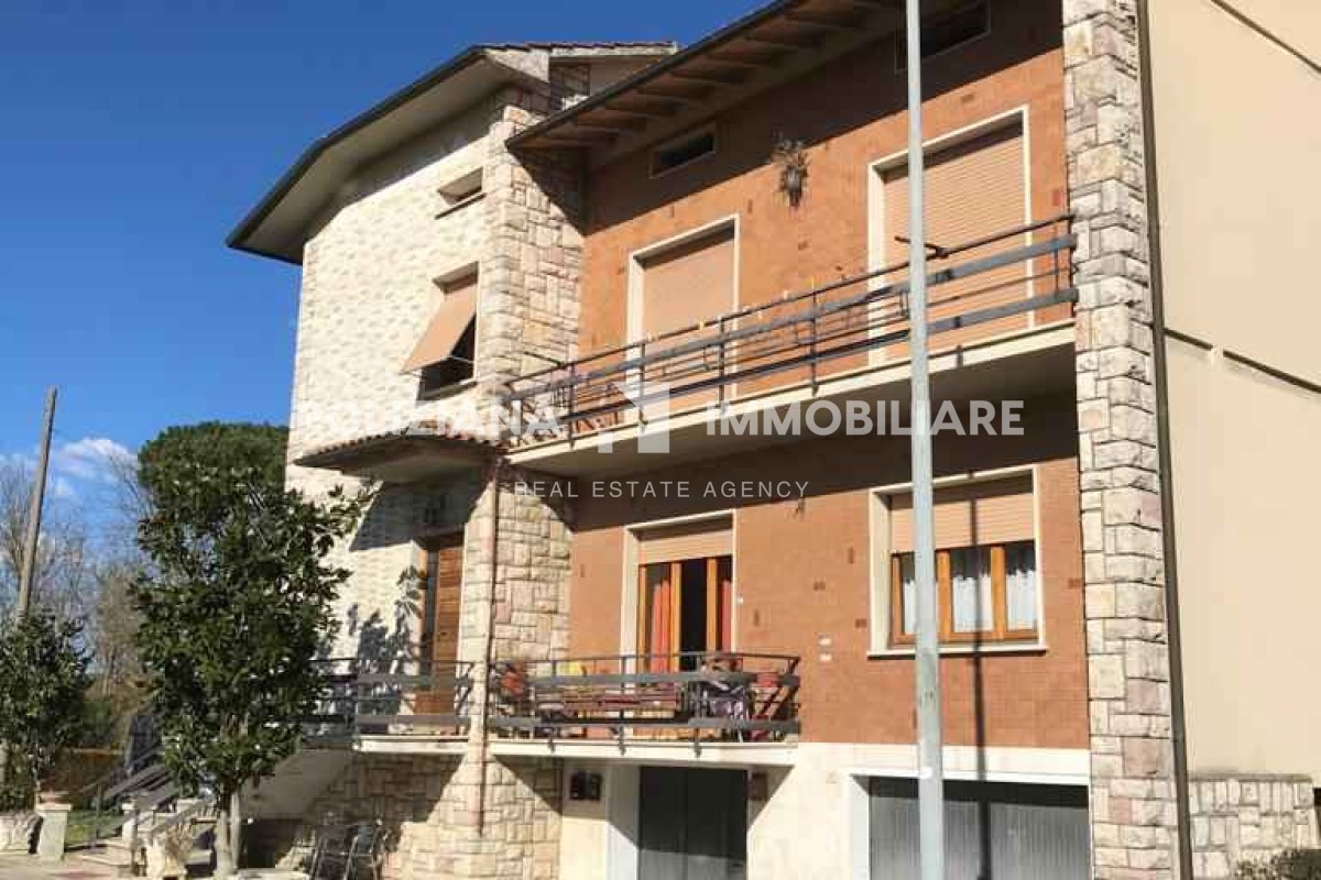 In vendita appartamento di ampia metratura posto al primo piano di una palazzina bifamiliare situata in zona tranquilla e ben servita. L’edificio è caratterizzato da una facciata in pietra a vista e presenta un ingresso indipendente tramite scala esterna.