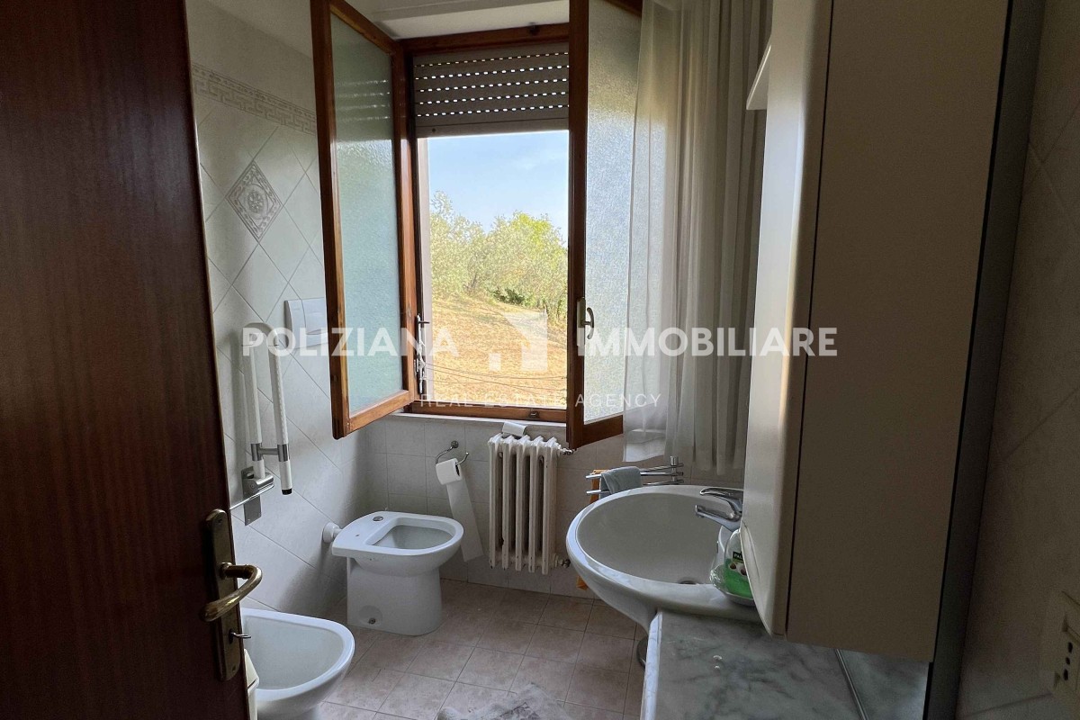 Il tinello, dotato di un balcone, è perfetto per i pasti in famiglia, mentre l'ampio soggiorno si affaccia sulla splendida campagna circostante, creando un'atmosfera serena e rilassante. La cucina separata è funzionale e pratica, ideale per chi ama cucinare. L'appartamento dispone di due camere matrimoniali spaziose e una camera singola, perfette per ospitare amici e familiari.