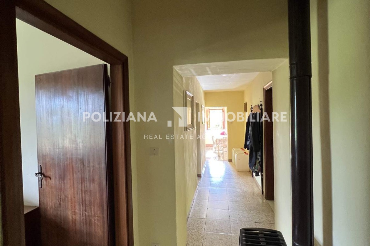 La casa principale, costruita in pietra e mattoni, conserva intatto il fascino rurale originario: soffitti con travi in legno e pianelle, pavimenti in cotto e ampie finestre con affacci panoramici sulla vallata.