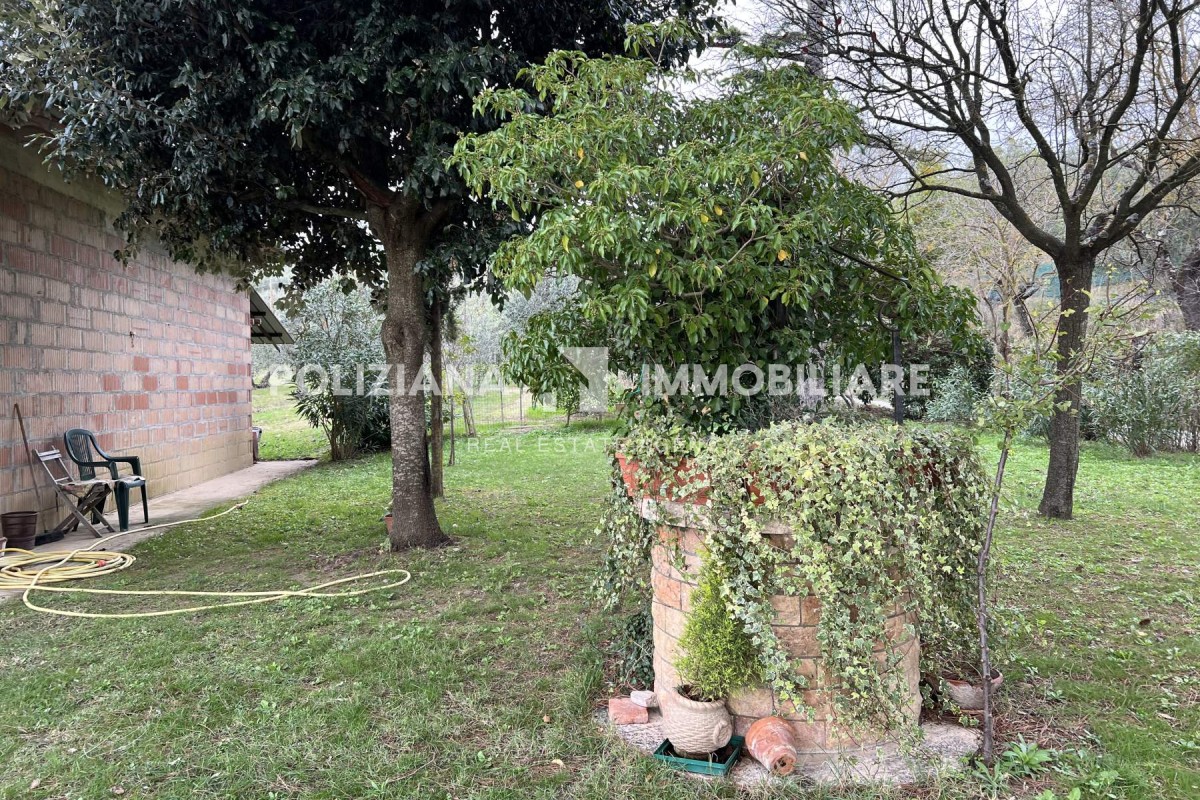 All’esterno un curato giardino con pozzo, olivi secolari e piante ornamentali introduce alla proprietà, che comprende inoltre un annesso agricolo in muratura e circa 7.500 m² di terreno tra uliveto e vigneto, perfetto per chi desidera coltivare o vivere in armonia con la natura.