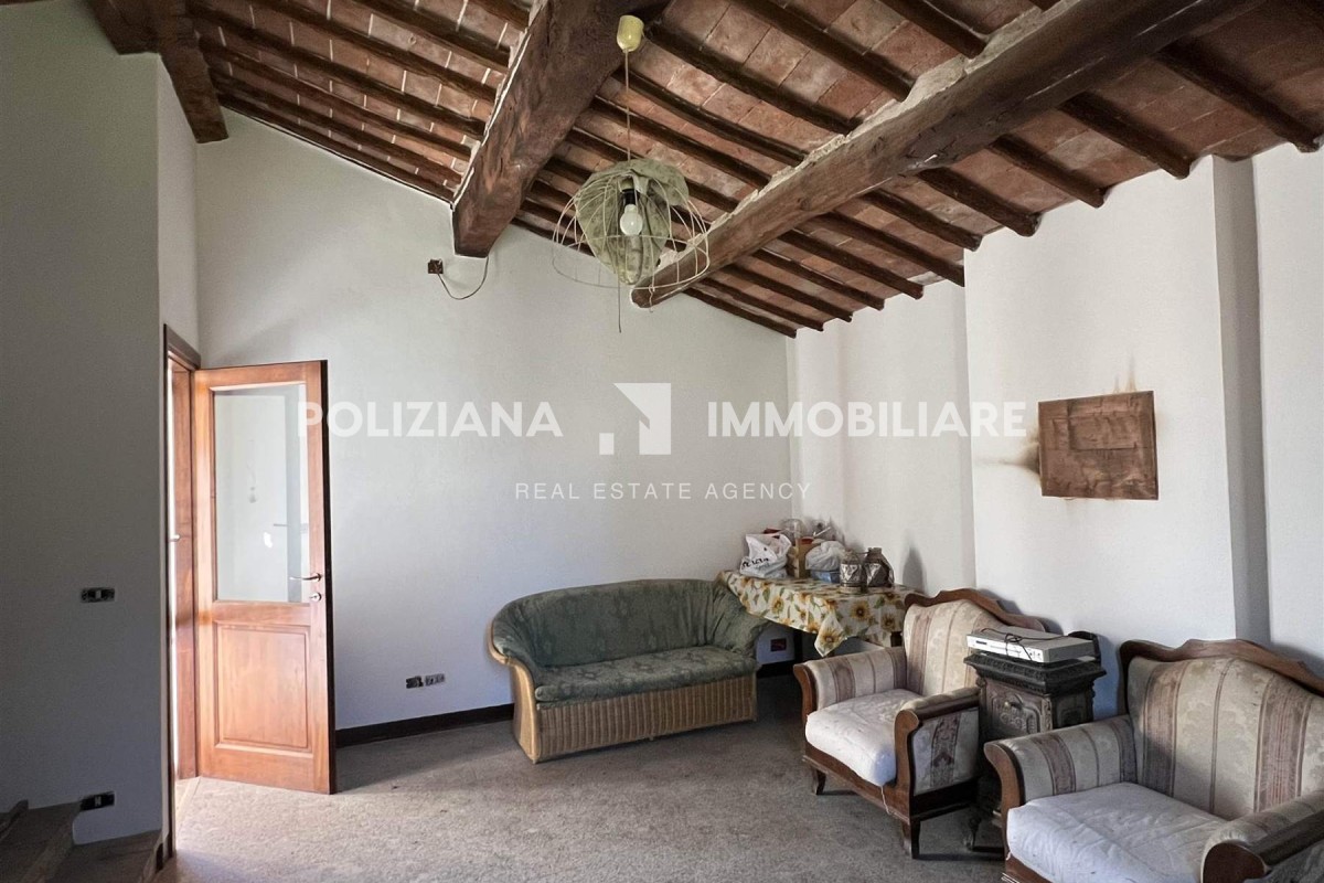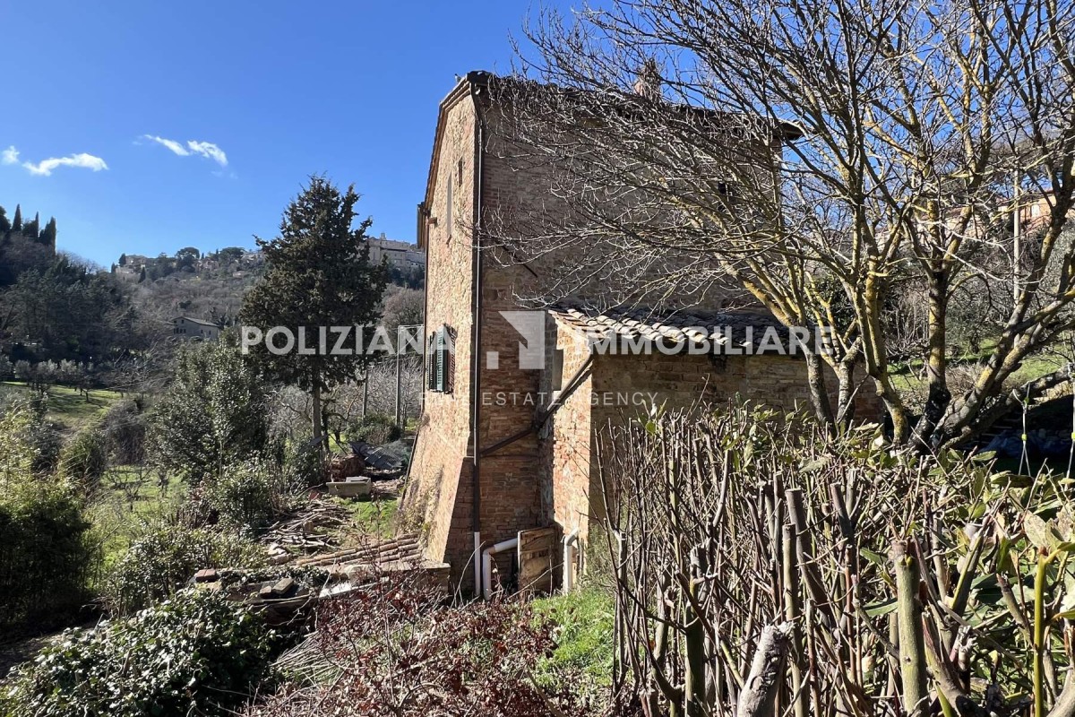 Casale tipico toscano con ristrutturazione d completare immerso nel verde della campagna di Montepulciano. Si trova a pochi passi dal centro raqgiungibile anche a piedi ma nello stesso tempo in posizione tranquilla. Alla proprietà si accede tramite un ingresso indipendente, con un resede di 4000 mq di terreno. L'immobile si dispone su tre livelli. Al piano seminterrato troviamo una cantina e delle stanze da sgombero. Attualmente è diviso in due unità abitative distinte. Al piano terra troviamo una ampia cucina una sala-soggiorno 3 camere ed un bagno. Al piano 1° una cucina 2 camere ed un bagno. I solai presentano la finitura tipica del casale toscano con travi in legno a vista. Gode di una ottima visuale su tutti i lati del fabbricato ed è molto luminoso.