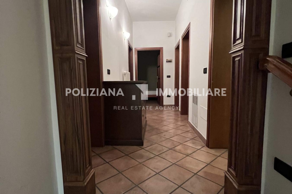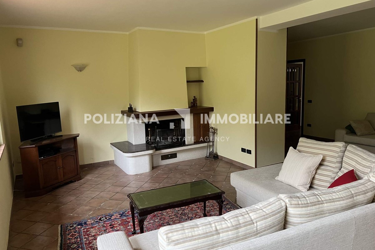 Disposta su due livelli, la villa si compone di un accogliente soggiorno doppio con camino, una cucina abitabile con zona pranzo e stufa a legna, quattro camere, tre bagni, e spazi accessori ideali come studio o area hobby.