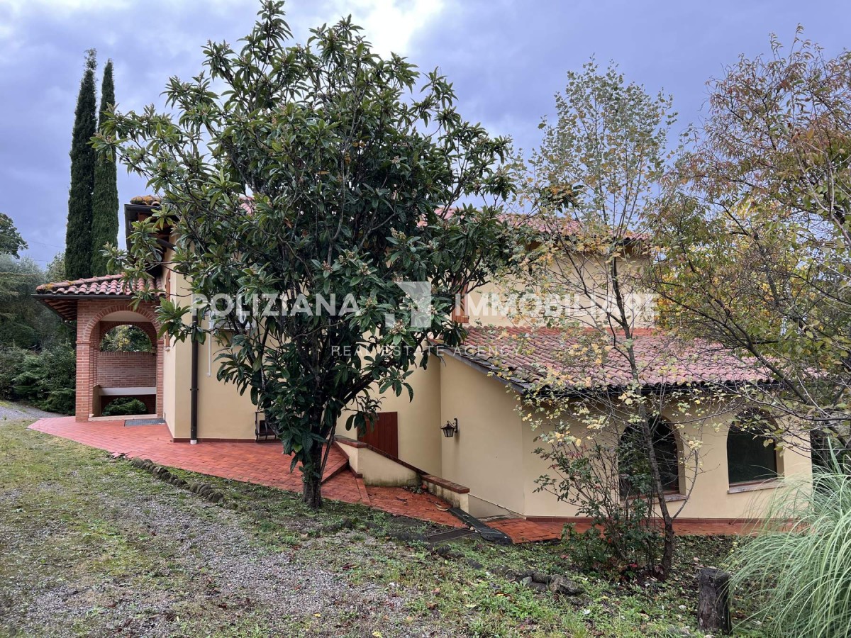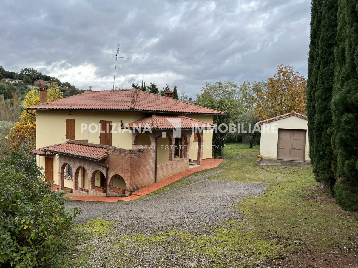 A pochi minuti dal centro di Montepulciano, immersa nel verde delle colline toscane, proponiamo in vendita una villa indipendente di 240 mq in ottime condizioni, circondata da un ampio giardino privato con dependance e garage.